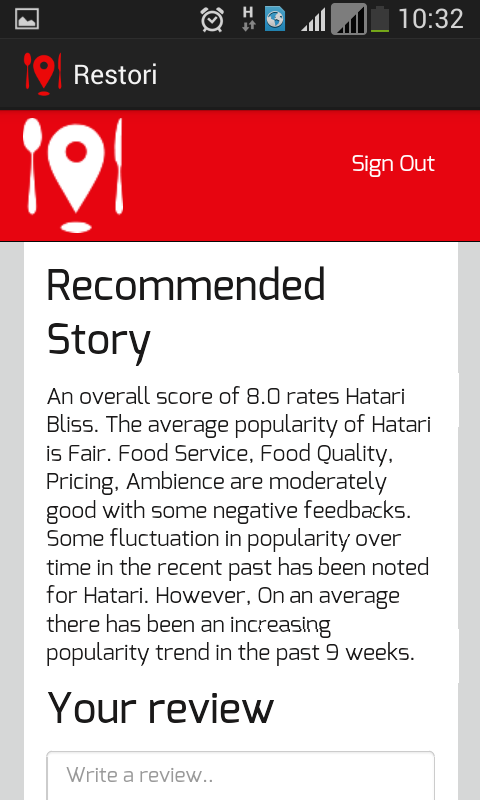 Restori Predicts People’s tastes and Recommends restaurants, food varieties, hotels and places to travel accordingly.