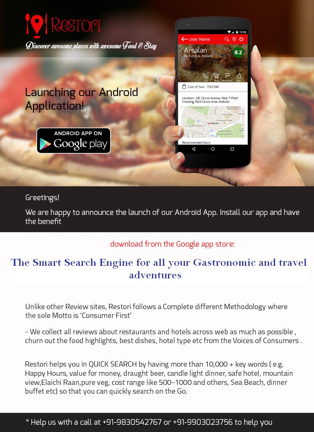 #RESTORI....now in Google playstore...Download the Android App now and see your gastronomic and travel predictions