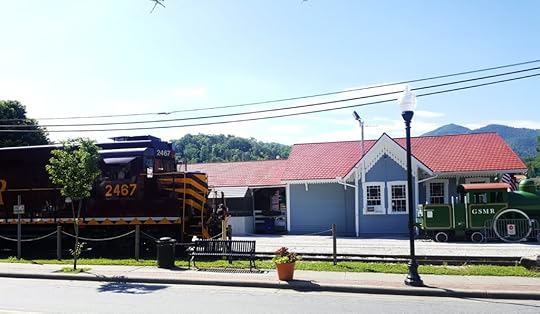Morning errands seem never-ending. Today, we went towards Bryson City instead of Sylva. We stopped at the coffee shop to ask if Bryson City has a pet store. Of course, I stopped in the coffee shop to ask. I could search GPS, but people have better answers about local places. Besides, I am still training Birdie about being a polite canine in public places. I’ve discovered she REALLY likes people. There were no qualms about tying her to a tree on the porch while I asked for directions and a coffee. She wouldn’t try to escape. I wasn’t in the shop long before she started barking. The bark was the one that meant, “Why aren’t those people petting me?” The bark is happy but shrill. It’s just one decibel lower than the scream bark which is her Squirrel bark.I go outside to keep her quiet. One of the employees is talking to her trying to assure her. I apologize to her and the one waiting on me. The girl says there are children that make more noise than any dogs. I get that. Oh, and I neglected to mention, there is also a train across the street. A bell clangs and a steam engine hisses to remind me. When I stoop to get Birdie’s leash, I see what appears to be a shiny rhinestone or crystal near the leash. Like a crow enthralled with shiny objects I reach to pick it up.