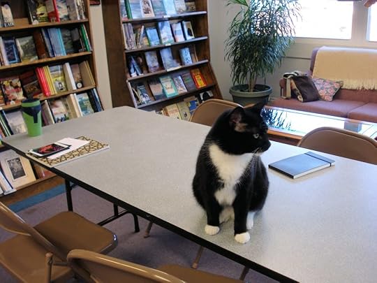 Now a writer jumps up and down in front of the window trying to silence the noise distracting us all. We then laugh about vibrations. Once she found the source of the sound, she resolves the problem and we return to writing in the quiet bookstore. We write in an old house that became a doctor’s office, became a bookstore, became a restaurant. The stories this building could tell. Perhaps it was talking to us today.