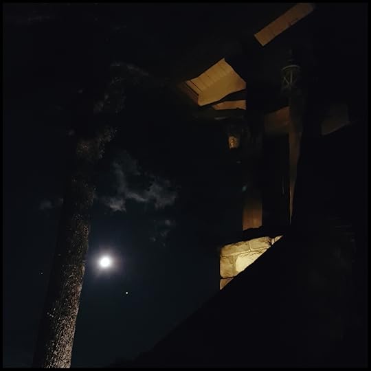 The place where I live now is a wonderful place on top of a mountain. At night, it seems the stars are closer. At times, it feels a though I could kiss the stars. This morning the moon was my bright friend as I took my black dog into the chill. The smells are crisp at four a.m. The road below is quiet and nothing stirs.