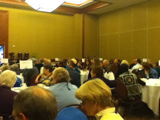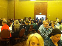 You'll have to excuse me for not blogging on sunday about saturday's convention activities...I was asleep. Actually, long story short after 3 bites of my Saturday night dinner I was alerted to mushrooms in the dish and...massive headache...food allergies...I'm fine. Back to Saturday's convention activities this was the morning breakfast trivia crowd: