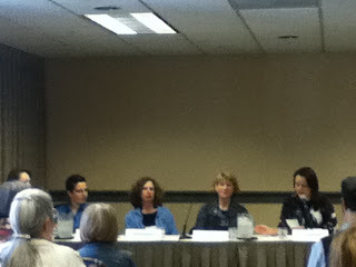 So here we are at The Killer Thriller Panel. Oo oo what are we going to talk about? I mean what kind of panel is this going to be? It's being moderated by Robin Burcell, who is a trained FBI forensic artist, hostage negotiator, cop, detective, all the goodies.