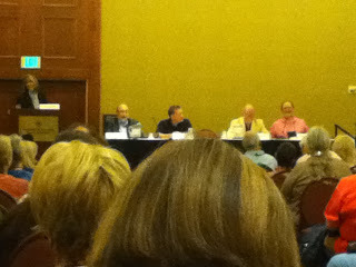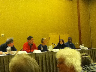 This panel was titled: Breaking the Rules. I'm not sure if it was a panel of crime novelists or improv players. Led by Lee Goldberg this group could give Upright Citizens Brigade a run for their money! Dear, Poor Kirk Russell juggled the boisterous personalities deftly however and good points were made on everything between writing colorful characters to e-publishing.