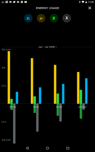 This last graph shows the past month. The first week we were away on holiday, hence the lower house power demand.
