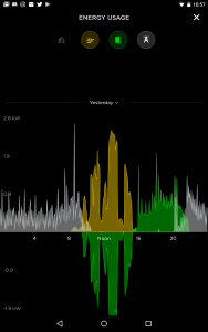 The first few days have been interesting. Even this time of year it’s clear a sunny day is enough to charge it to about 30% (About 4.5 kW). You can see this from yesterday’s graph.