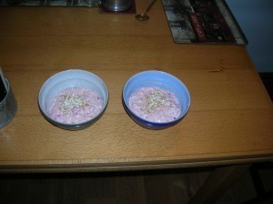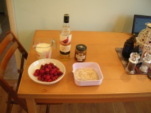 The recipe is for four servings, so it’s cranachan again tonight, hurrah! I’ll find out what it’s like after standing for 24 hours.