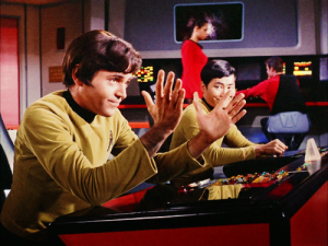 Apart from two first season episodes, where Lt. Commander Kelowitz makes an appearance, we never see nor hear from a chief of security. And it seems like that security perspective would have been necessary on board a starship. Add a female head of ship’s security, preferably one of Indian or Arabian descent. She wouldn’t be firing the ship’s weapons (wouldn’t we all miss Sulu firing those?) but she’d be involved in all away teams and the ship’s security issues that always crop up, and be there for all the briefing room meetings. Perhaps she could be the one raising and lowering the deflector screens and have a bridge position, as the security chief on the fan-produced Exeter starship episode was doing.