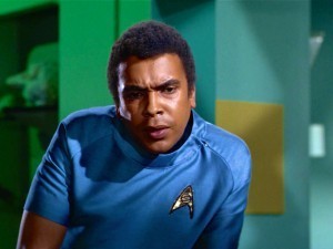 In the original series bible Uhura is third in the chain of command, right after Kirk and Spock, and above Sulu and even Scotty. Given that Scotty outranks her, I’d make her the senior bridge officer, which means that she could command when Kirk and Spock were away, but that Scott might sometimes be left in overall command when the captain and first officer were away for long periods. Cool as it was to see Scotty in charge in some really fine moments of the series (when Kirk was stranded on planet in “A Taste of Armageddon,” say), think how great it would have been if it was Lt. Uhura in the command chair!