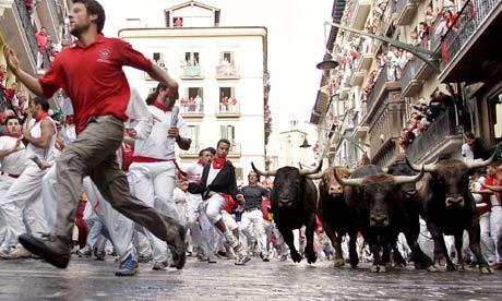 A Tor editor (in red) pursued by writers eager for novel contracts outside a Spanish convention.