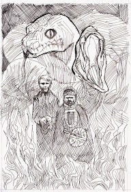 Anoche tuve unos sueños muy extraños. Me veía en un lugar de bosques oscuros, huyendo hacia el interior de seres mitad hombre, mitad serpientes. ¡Esto tal vez se deba a mis lecturas en torno a razas primigenias, vinculadas con la sierpe! ¡No sería extraño! De todas formas, fueron sueños horribles. Me deseaban atrapar para cumplir uno de sus rituales: el de ocupar un trono de piedra frente al mar, luego de ser cambiado mi rostro.