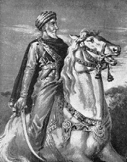 (Ilustración que muestra como se imaginaban los occidentales a Hassan ibn Sabbah, el "Viejo de la Montaña", lìder de los assacis o asesinos)