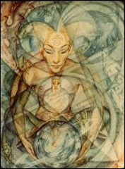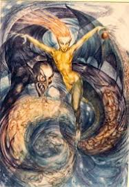 (El interesante trabajo “Astral Scene” donde aparece ella misma en proceso de salida en astral. Las formas serpentinas y en espiral de su hálito llaman la atención)