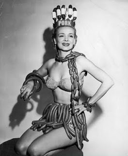 Pork Queen. Photo thanks to Gastronomica: Queen of All ThingsFirst there was The P-Town Queen. Then came the Sausage Queen! I'm pleased, chuffed, overcome, and goofy happy to announce that my comedy, Confessions of the Sausage Queen, will be coming out with Champagne Books next July.Mandy Minhouser figures that she’s already had her fifteen minutes of fame and excitement. The hype created by the picture that her husband Randy sent in to Girls! Girls! Girls!, which featured Mandy wearing nothing but a garden hat, has finally died down. And life in the little town of Kassenburg goes on as it ever has. Until Big Bill Ludowski, founder and owner of the town’s largest employer - Bill’s Big and Tasty Sausage- dies while he and Mandy’s grandmother Lila Rose were, as Mandy puts it, doing their best Adam and Eve imitation under the hydrangea bushes. That Gran and Big Bill have had an affair that began around the same time as World War II is a secret that everyone in Kassenburg knows. But a new secret is about to be revealed. Big Bill has, in a DVD that only he, his lawyers and Mandy’s Gran know about, bequeathed the sausage factory to Lila. And he’s posthumously offered the job of CEO to Mandy, much to the consternation of his relatives. Mandy doesn’t know squat about the sausage biz and Bill’s grandson Hughes, the factory’s CFO, does everything in his power to discredit Mandy and close the Big and Tasty. But Mandy has the one thing that Hughes doesn’t-- family and friends willing to put themselves on the line to save the sausage people. With hope, faith and a whole lot of luck, Mandy and company manage to do just that.