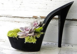 Have you wondered why there's a high heel with flowers on the cover of my new romantic comedy, Afterglow? It's because the main character, India has the brilliant idea of turning old shoes into shoe planters to sell for charity. For lots of reasons which I won't give away here, the shoe planter project turns out to be more than India bargained for.Shoe planters aren't a new idea. The folks at Fun Flower Facts say that you can make planters out of just about anything.