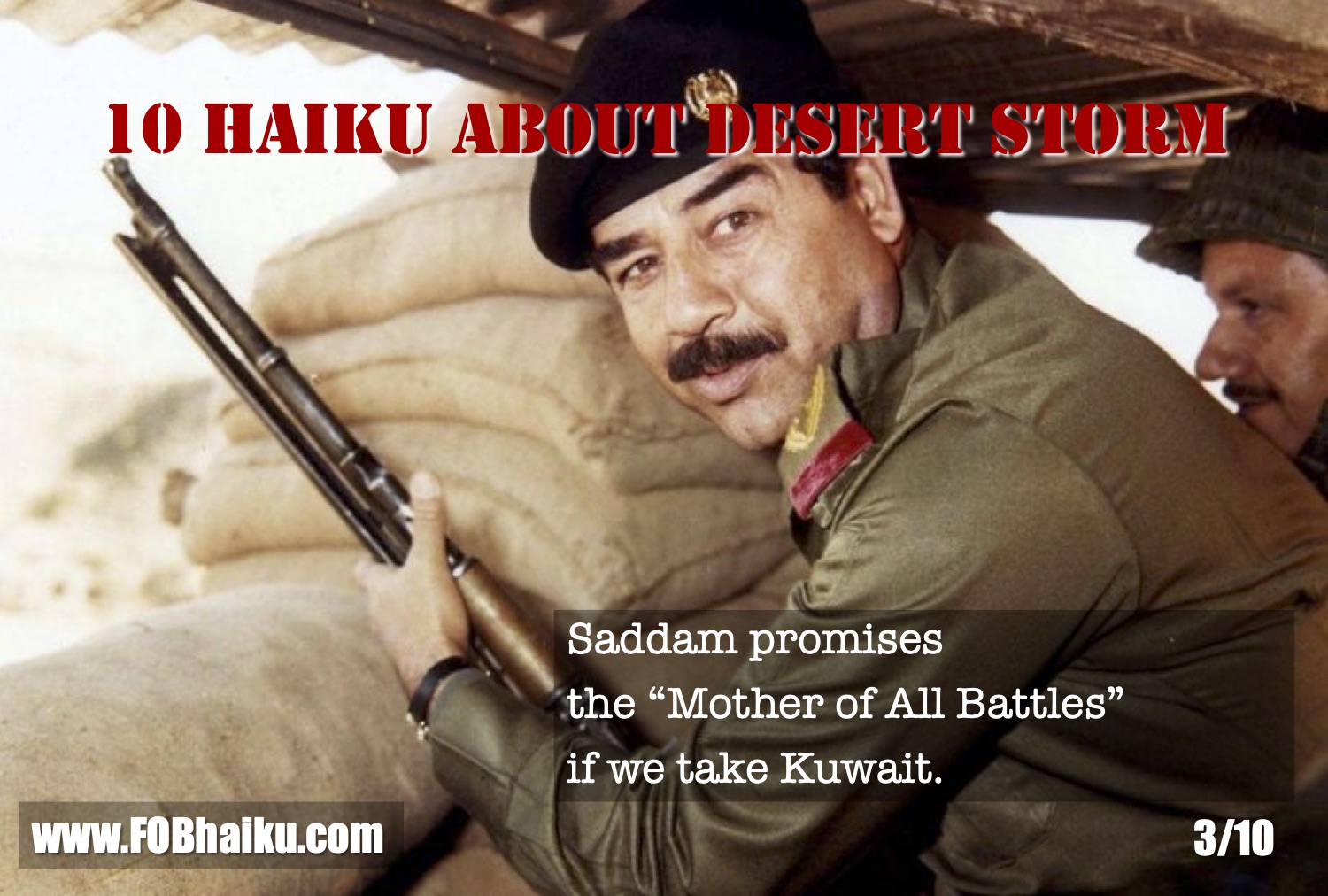 Haiku No. 3:Saddam promisesthe “Mother of All Battles”if we take Kuwait.