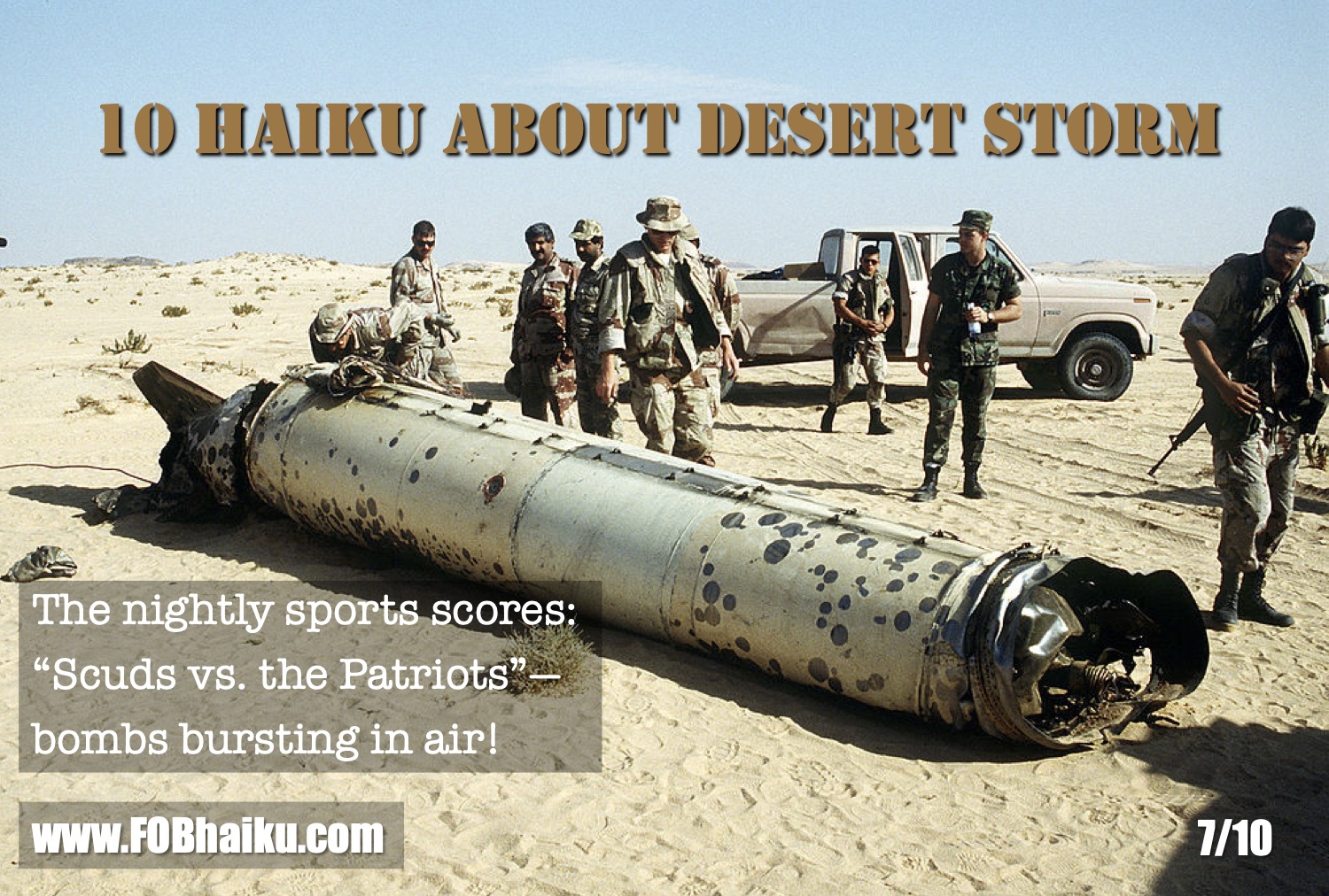 Haiku No. 7:The nightly sports scores:“Scuds vs. the Patriots”—bombs bursting in air!