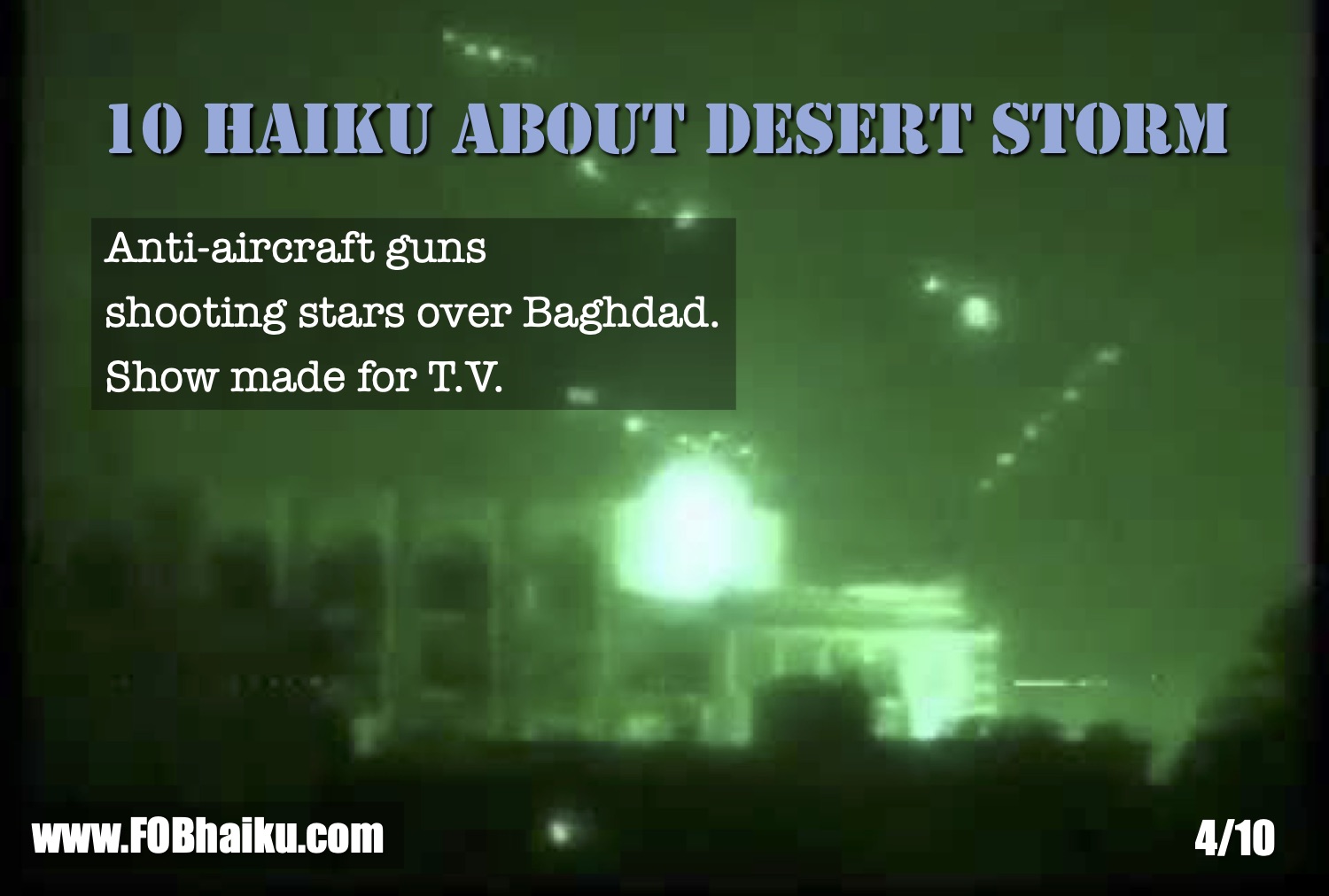 Haiku No. 4:Anti-aircraft gunsshooting stars over Baghdad.Show made for T.V.
