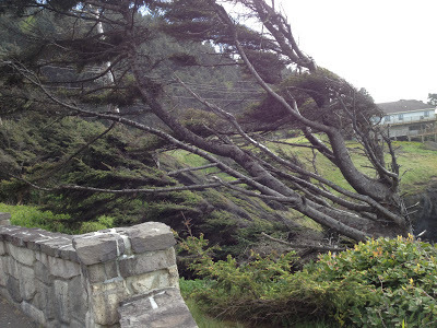 Trees bent with the constant wind