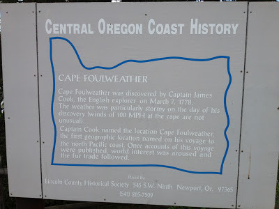 That was before the name. I am certain I read the name on that sign on Highway 101 as a child. I'm a lifelong Oregonian, and my family spent time on the coast. My freshman year roommate in college (also a high-school friend and volleyball teammate and one of my best friends to this day) had spent a lot of time as a kid just fifteen miles north of Cape Foulweather. We drove that strip of coast often in college. Often. It was just over an hour's drive through farmland and over a curvy mountain pass before dropping down to the coast. We loved that drive. We're the type of friends who can just be together in silence, or any manner of goofiness, and many times we ended up atop a cliff at one of her favorite childhood spots, watching the ocean spray and the sea for ships and whales. However, the first time the name Cape Foulweather really stuck with me was when I met a coffee roaster at a farmer's market from Cape Foulweather Coffee Company. Their coffee was AMAZING, by the way, which is why I included a link. :)