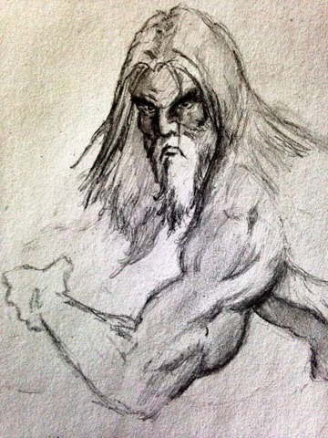 But on T day of the A-Z challenge I ran out of time. But I have the start of the hairy warrior who has been weapon-less since he met the time manipulator. So, just imagine he climbed the mountain yesterday.