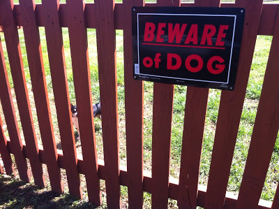 The attack dog would have come closer... but he's scared of the sign.Guster, the dog of doom, will devour your toes in a fit of fury should you dare to pass through into his domain.