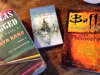 I found this book while browsing in Borders one day. I love Buffy, and I'd never taken philosophy beyond the 101 class. This book seemed like a painless way to cover some of the ground I'd missed. But it turned out to do more than that. For one thing, I learned a lot about writing from it, particularly how ethics and a world view can make a story rich and layered without slowing it. Much as I'd liked Atlas Shrugged, it was as if Rand didn't trust her readers to draw the "right" conclusions, so she'd inserted treatises within the novel. Probably good for reaching someone like me who wasn't inclined to read her non-fiction cover-to-cover, but not a model of how I wanted to write fiction. Buffy and Philosophy peeled apart plots to show me how the ethics of Buffy creator Joss Whedon made the storylines stronger and the characters deeper without any preaching. The book also helped me understand my own world view and why Buffy spoke to me beyond just being a good show with strong characters. I'd long ago rejected most of Catholicism, though not the values I'd learned along the way. I struggled to articulate the source of my beliefs on right and wrong. The first essay in Buffy and Philosophy speaks to this, positing eudaimonism as the ethical basis of Buffy. Eudaimonism "holds that the basis of moral goodness is the fulfillment of human nature to its highest potential....The Buffyverse consistently reflects the Platonic view that a just person is always happier than an unjust person." (See the first essay, Faith and Plato, pp. 7-8.) The essay shows how this plays out throughout the show and in spinoff Angel, particularly through the dynamic of Buffy and Faith, initially drawn as the "good slayer" and "bad slayer."
