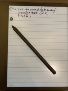The First MovieI know this is a great resolution because I started it early. Last Friday I picked a movie from Netflix with a cool concept. It's called What Happened To Monday. (Which you knew from the photo. That's my Kindle Scribe, which I just got as a holiday present. I'm having fun with that, too, as you can see by my starting my movie list using its notebook feature.)
