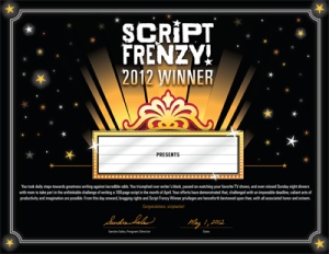 Now that I’ve got one screenplay under my belt (well, almost), will I be doing more? I just don’t know. It was definitely an interesting exercise that I think will help my writing in the long run. I may give it another run next year depending on where other projects are (there’s always something simmering in some stage of completion).