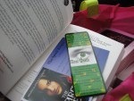 With the books, they gave us a book giver pin, some stickers and bookmarks. Sadly, I only received seven bookmarks so I used some of my own promoting my book and some postcards promoting The Spirit Keeper written by my author friend Melissa Luznicky Garrett. Nice to be able to cross promote!