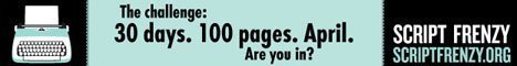 Script Frenzy is April's version of NaNoWriMo. It's a 30 day challenge to write one hundred pages of a script for TV, theatre, webcast, graphic novel, etc. While I don't really have any plans of turning my script into a short film, I think it's good to spread my wings and stretch my boundaries. Certain things I know I wouldn't be good at writing, like poetry, but I think I could pull out a decent script. I recently made a friend who is involved in film and whatnot, so who knows, maybe we can work on making something of it if it comes out good. I also have another friend in the industry who would probably give it a look and tell me if they think I have any talent for it.