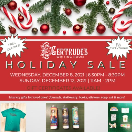 Get 15% off all merchandise at Gertrude’s Writing Room! Literary gifts for bookish! T-shirts, stickers, stationary, word prompts, books, bags & FREE COOKIES!