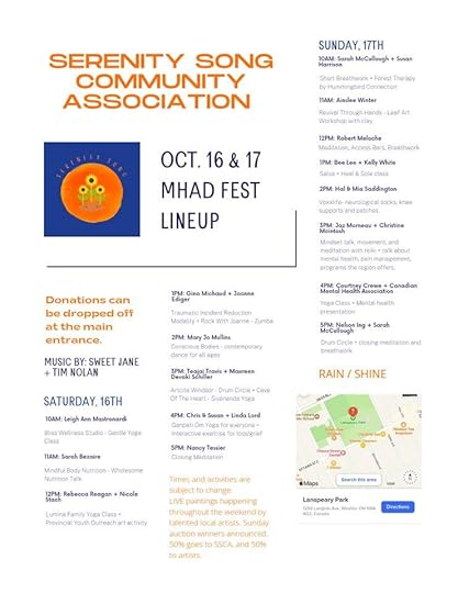 Thank you to Christine Paris and Justine and the MHADFEST/Serenity Song Community Association for their hard work and wellness ‘wow’ at Lanspeary Park this weekend! We were grateful to share space with so many lovely folks, and to continue to learn about different ways to be well. (The wind gave us a good whipping, didn’t it?!)