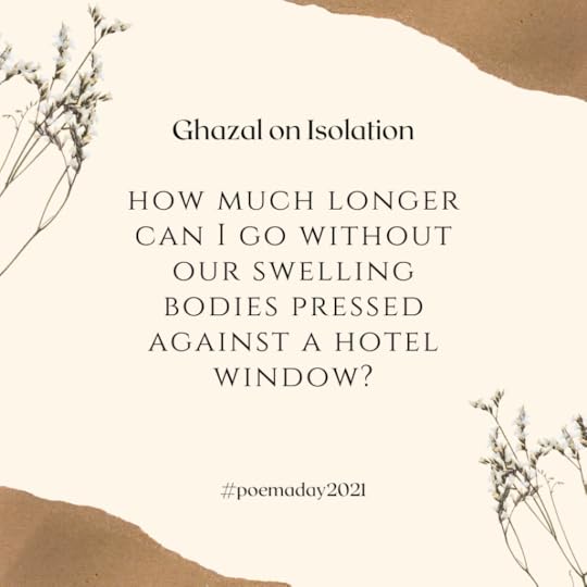 Inspired by my friend and poet Margo Wheaton (with whom I am sharing a virtual book tour event on May 20th!) who writes ghazal poems, I took a stab at writing one this morning. I cheated a bit by adding a lonesome word on an extra line…