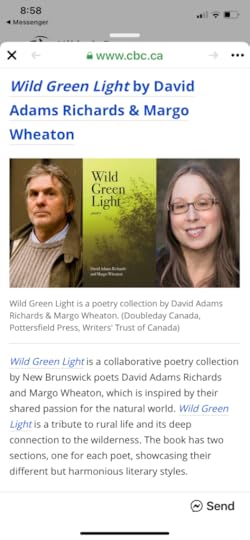 Margo Wheaton is on the list too! Joining David Adams Richards for their book Wild Green Lights! Margo and I have our virtual event on May 20th wherein we’ll talk about writing poetry about family…and how it feels to make a CBC books list!