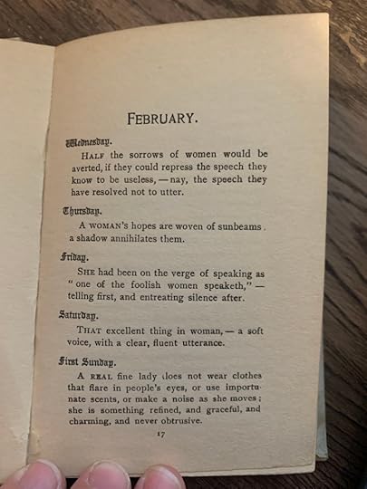 I’m both appalled and humbled by this quote…by all the words of (so-called…interesting, historical, cultural….questionable!) wisdom in the pages…Quotes from famous women, set to the different months of the year, include Elizabeth Barrett Browning, George Eliot, Charlotte Bronte, Jean Ingelow, and Christina Rossetti. And this little ditty…Look – a companion book for men! This book, also compiled by Rose Porter, is jam-packed with all male figures/writers.