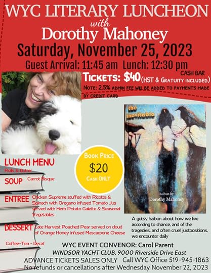 Poet Dorothy Mahoney will read from her new collection of poetry ‘The Inevitable’ after a delicious lunch at the Windsor Yacht Club. Tickets are on sale now. Call 519-945-1863 – and leave a message if no one answers…! Dorothy writes haibun – a form of prose poetry that includes a haiku. It’s a fascinating style that Dorothy has honed!
