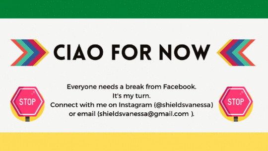The thing is that social media is part of my life…in my friend circles and definitely for ‘work/business’ related things. For example, it seems like Facebook is a giant digital cork board for events. I can still look and see, which is a good capability of Facebook if one is not fully deleting her account. Even though I’m not using my pages, I can still see what’s going on if I choose. But I’m choosing not to as much as I can. I don’t have the power to not look at/see things that break my heart…