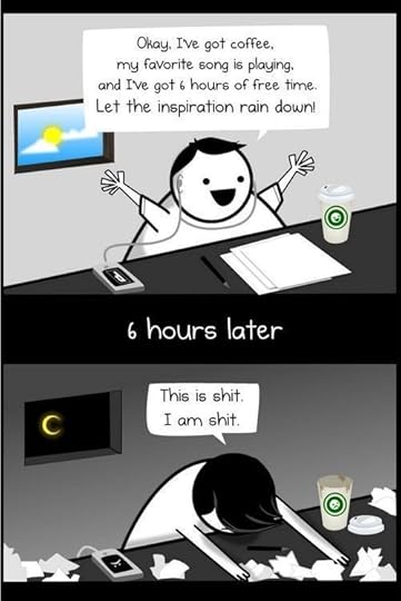 Then I read it. I don’t know what happened but after I read the whole thing I suddenly hated the entire story. I was unimpressed with my own writing, couldn’t stand the characters, hated the whole notion. I felt crushed and defeated. The words that reverberated in my mind were, “This is utter shit!”↓↓ My Face.