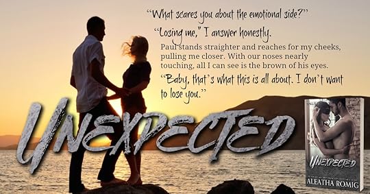 "Aleatha Romig never disappoints. Unexpected packs a punch with hot sex and plot twists laced flawlessly with beautiful romantic morsels between a couple finding themselves at a crossroads in their marriage. Treat yourself and one-click!" ~ Piper Rayne