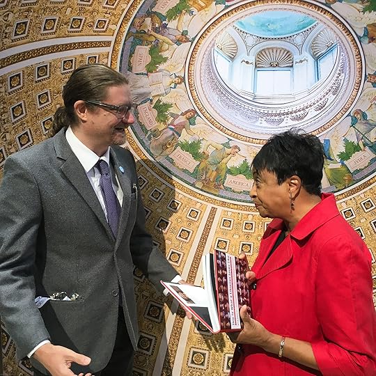 Whenever I wasn't writing down my name I was carrying around an extra copy of the book because the Librarian of Congress, Dr. Carla Hayden was ... somewhere ... at the convention. People would sporadically post Twitter selfies with her "I met Dr. Hayden at the bar!" -- "I saw Dr. Hayden in an elevator!" they were calling them "unicorn sightings". I figured that if I didn't carry a copy of the book around, I'd certainly see her in the Walgreens or in the lobby of a hotel. I eventually did run into her at 9 am on Saturday morning. I said "I wrote this book--" and she cut me off