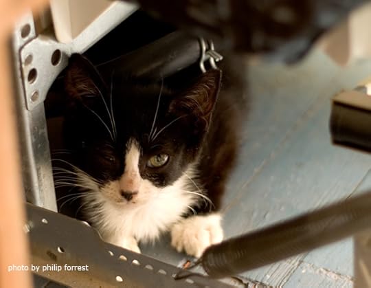Roswell came to us in 2006 when Phil Forrest texted to say that there was a stray kitten on the back porch. She was skittish and he wasn't able to catch her.