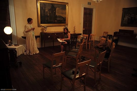 So, last night I went to the invited dress rehearsal for The Yellow Wallpaper at the Physick house. This is the show after tec where the lights have been figured out, the props and the costumes, and they run everything. It's possible in a dress that things will stop and back up and that happened about 2 minutes into this performance when a lighting cue was amended -- but then the show went flawlessly from top to bottom and everybody was spooked and horrified -- in different ways.
