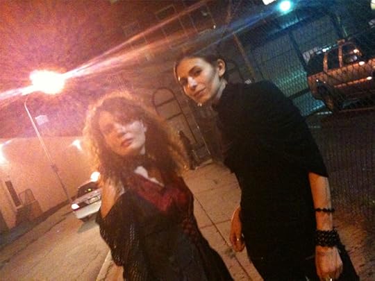 So, now that I'm obsessed with Project Pitchfork and wondering if they ever sit around in their pajamas looking like normal people I realized that not only did I see them, but I hung out back stage with them when Carfax Abbey was promoting the "It Screams Disease" album (which I shot the album cover for). Looking through all my cell phone photos, I see I was in Canada that morning, then went to the show with Trillian Stars & Nicki Jaine -- there are a couple photos of a pile of Carfax Abbey albums (which had just come out), a really blurry shot of me sitting back stage that kind of looks like a ghost in a fog and this photo of Trillian & Nicki. I 100% remember now that Project Pitchfork were absolutely not wearing pajamas. They looked goth as a pile of black lace bones, but I didn't say a word to them. Possibly because they were speaking German & I had no idea who they are. The one day I seem to have taken no photos. Thanks to Patrick Rodgers for the opportunity to tell this missed connection story.