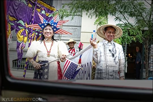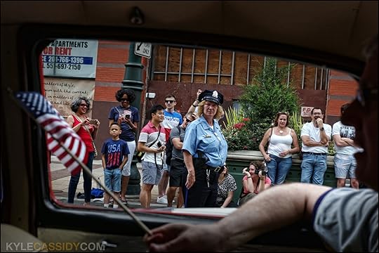 I was overjoyed today to be able to ride with the Lambda Car Club in the Philadelphia Fourth of July parade. We celebrated the fact that King George no longer plunders our seas, ravages our Coasts, burns our towns, and destroys the lives of our people, and also the fact that, at some point, this country opened up her arms to all of us when we were tired, poor, and huddled masses yearning to breathe free. We may all need a reminder that all of us started out somewhere else and were given a chance here.