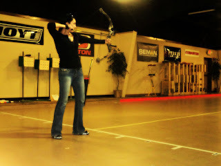 1. I didn't thwack my wrist at all. Yay! No crackhead bruises!2. I need to hit the range on days I don't have workouts so my arms don't tire as quickly.3. Bow wax and target fluff can resemble awkward dandruff if you wear a black shirt to shoot.3. Next time, I'm buying one of the zombie targets.