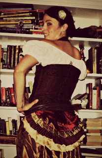 One of my favorite things about dressing steampunk is the way that having a big caboose makes your waist look smaller. Whether you're adding a bustle, a ruffle, or side panniers, big hips and a bodacious booty are actually a plus.