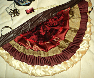 No, really. It's a PURSE. The top ruffles flip cleverly open to reveal a big purse, including four specially sized compartments for my phone, camera, and Sharpies. Everything I need at a con or event, right there on my butt.