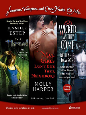 Now just make sure to come back on March 30 at 7pm for more excerpts, books, sexy vampires, cake, and wine at the WICKED AS THEY COME launch party. James is hoping to be there, too, so you can get a copy of BLOOD AND BULLETS signed while you're at it.