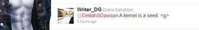 She's the author of one of my all-time favorite books, OUTLANDER. The book that taught me that romance wasn't necessarily a bad word, when it came to literature. The book I recommend to *everyone*. The book I've read so many times the cover has fallen off. The book that, when I started writing, I thought, "I'll never be able to write anything that amazing, but I'm damned well going to try."